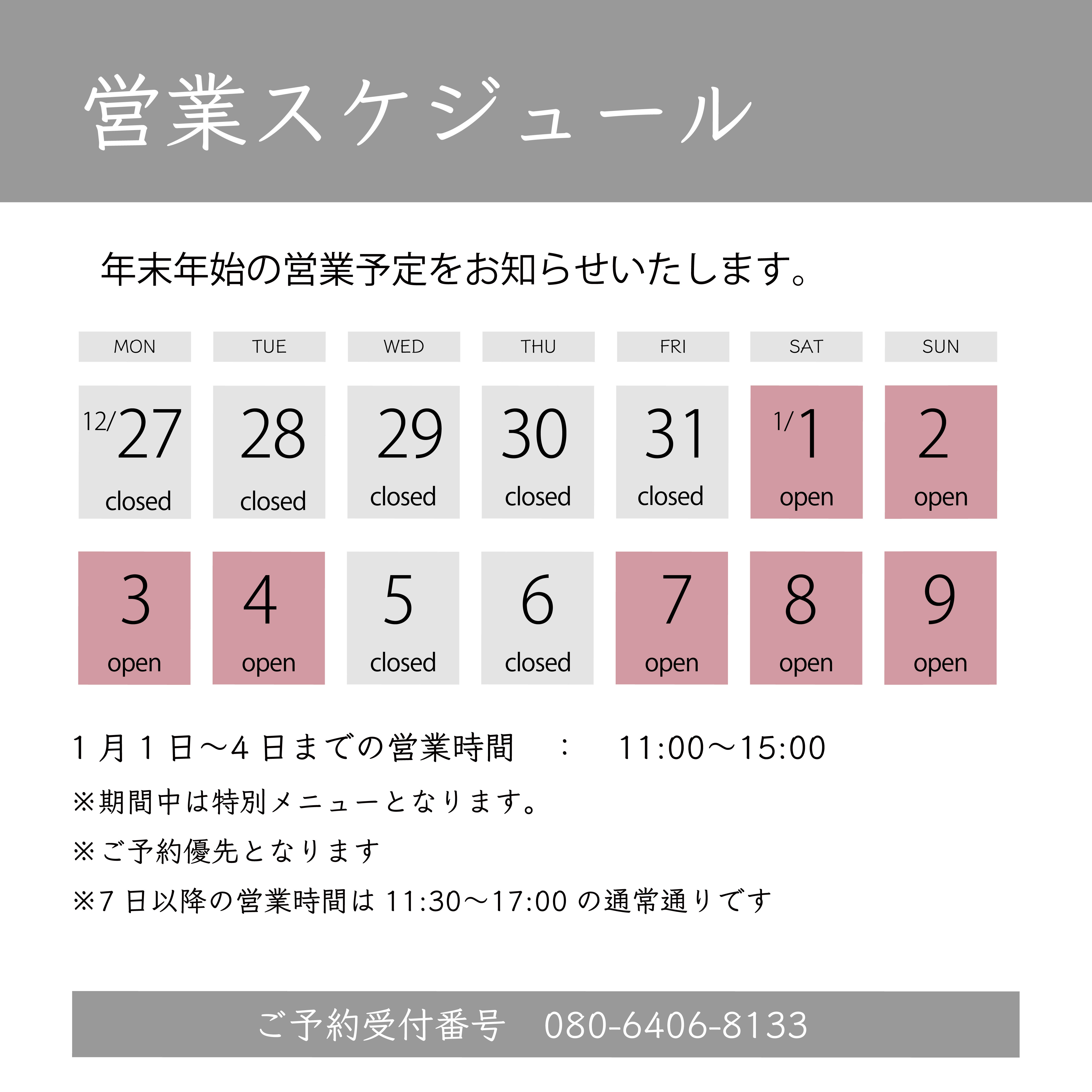 年明けは2022年1月1日(土)〜4日(火)営業いたします。